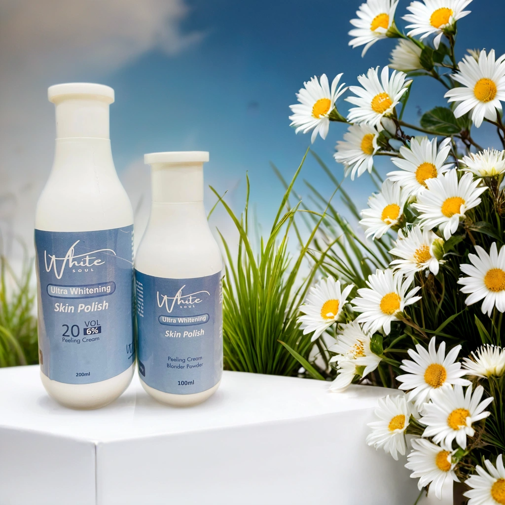 Enhance the look of your skin with the White Soul Skin Polish Kit – a gentle, multi-step skincare solution. This kit includes a Skin Polish Volume formula and a Dust-Free Bleach Powder, carefully formulated to help cleanse, smooth, and brighten the appearance of your skin. The exfoliating polish helps remove surface impurities and dullness, while the bleach powder supports a more even-looking skin tone. Suitable for most skin types and designed for at-home use.